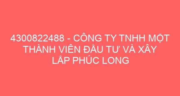 4300822488 – CÔNG TY TNHH MỘT THÀNH VIÊN ĐẦU TƯ VÀ XÂY LẮP PHÚC LONG Đăng vào 22/04/2012Tác giả daithinh 0 Mã số thuế: 0318450120-001 – Đại diện pháp luật: Trần Tấn AnĐịa chỉ: 135/2 Tth21, Phường Tân Thới Hiệp, Quận 12, Tp Hồ Chí MinhDoanh nghiệp liên quan:Công Ty TNHH Đầu Tư Và Xây Dựng Thiện TuấnCông Ty TNHH Một Thành Viên Xây Dựng – Thương Mại Và Dịch Vụ Vnct094300879893 – CÔNG TY TNHH MỘT THÀNH VIÊN XÂY DỰNG VÀ NỘI THẤT ROYAL FURNITURECông Ty TNHH Một Thành Viên Cơ Khí Và Thương Mại Vạn TườngCÔNG TY TNHH MỘT THÀNH VIÊN VẬT TƯ VÀ KỸ THUẬT PHÚ DƯƠNG4300880296 – CÔNG TY CỔ PHẦN THƯƠNG MẠI VÀ DỊCH VỤ QUỐC TẾ HKTCông Ty TNHH Một Thành Viên Đầu Tư Và Xây Lắp Phúc LongBỆNH VIỆN ĐA KHOA TƯ NHÂN PHÚC HƯNG – CHI NHÁNH CÔNG TY CỔ PHẦN PHÚC HƯNGCông Ty TNHH Một Thành Viên Dịch Vụ Và Xây Lắp Gia Phúc4300880070 – CÔNG TY TNHH XÂY LẮP THƯƠNG MẠI PHÚC ĐẠT