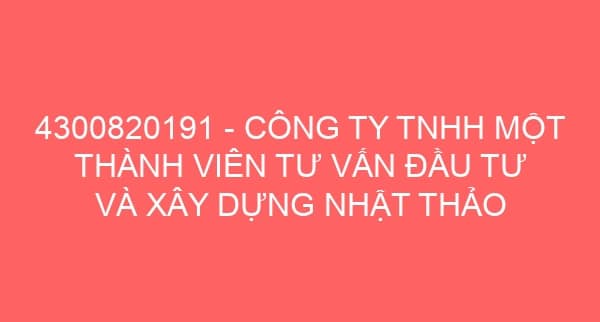 4300820191 – CÔNG TY TNHH MỘT THÀNH VIÊN TƯ VẤN ĐẦU TƯ VÀ XÂY DỰNG NHẬT THẢO
