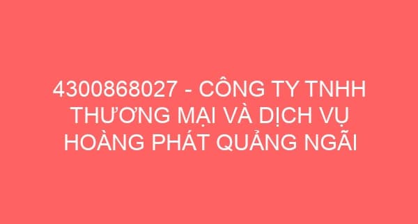 4300868027 – CÔNG TY TNHH THƯƠNG MẠI VÀ DỊCH VỤ HOÀNG PHÁT QUẢNG NGÃI