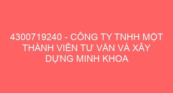 4300719240 – CÔNG TY TNHH MỘT THÀNH VIÊN TƯ VẤN VÀ XÂY DỰNG MINH KHOA