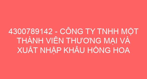 4300789142 – CÔNG TY TNHH MỘT THÀNH VIÊN THƯƠNG MẠI VÀ XUẤT NHẬP KHẨU HỒNG HOA