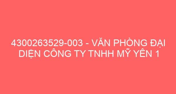 - 4300263529-002 – VĂN PHÒNG ĐẠI DIỆN CÔNG TY TNHH MỸ YÊN