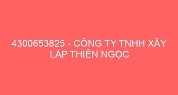 4300653825 – CÔNG TY TNHH XÂY LẮP THIÊN NGỌC Đăng vào 22/04/2012Tác giả daithinh 0 Mã số thuế: 0318450120-001 – Đại diện pháp luật: Trần Tấn AnĐịa chỉ: 135/2 Tth21, Phường Tân Thới Hiệp, Quận 12, Tp Hồ Chí MinhDoanh nghiệp liên quan:Công Ty TNHH Xây Lắp Thiên NgọcCông Ty TNHH Một Thành Viên Xây Lắp Ngọc LanCông Ty TNHH Một Thành Viên Xây Lắp Mỹ NgọcCông Ty TNHH Đầu Tư Và Xây Lắp Minh NgọcCông Ty TNHH Xây Lắp Ngọc QuangCông Ty TNHH Xây Lắp Và Thương Mại Hoàng Ngọc4300669913 – CÔNG TY TNHH MỘT THÀNH VIÊN XÂY LẮP NGỌC LANCông Ty TNHH Một Thành Viên Xuất Nhập Khẩu Ngọc Ngọc BíchThép Ngọc An Khang – Công Ty TNHH TM DV KT Ngọc An KhangĐoàn Ngọc Hào – Công Ty TNHH Đoàn Ngọc Hào