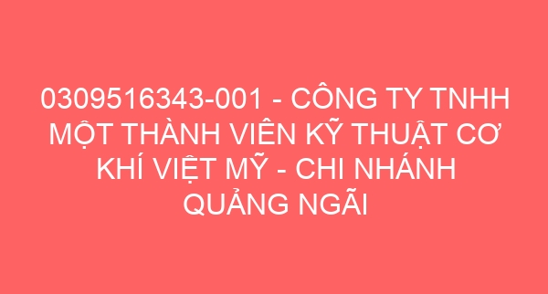 0309516343-001 – CÔNG TY TNHH MỘT THÀNH VIÊN KỸ THUẬT CƠ KHÍ VIỆT MỸ – CHI NHÁNH QUẢNG NGÃI