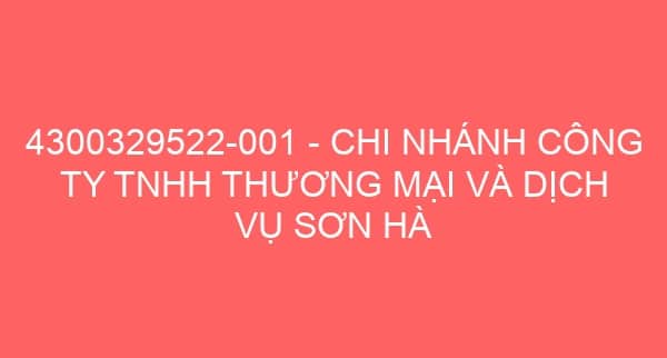 4300329522-001 – CHI NHÁNH CÔNG TY TNHH THƯƠNG MẠI VÀ DỊCH VỤ SƠN HÀ