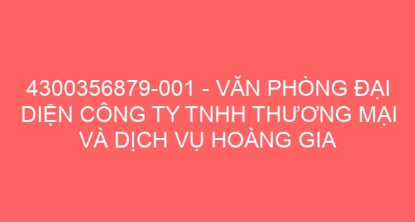 4300356879-001 – VĂN PHÒNG ĐẠI DIỆN CÔNG TY TNHH THƯƠNG MẠI VÀ DỊCH VỤ HOÀNG GIA
