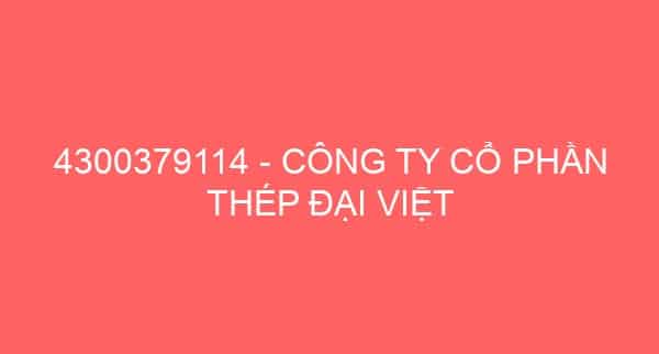 4300379114 – CÔNG TY CỔ PHẦN THÉP ĐẠI VIỆT Đăng vào 22/04/2012Tác giả daithinh 0 Mã số thuế: 0318450120-001 – Đại diện pháp luật: Trần Tấn AnĐịa chỉ: 135/2 Tth21, Phường Tân Thới Hiệp, Quận 12, Tp Hồ Chí MinhDoanh nghiệp liên quan:Công Ty Cổ Phần Thép Đại ViệtCông Ty Cổ Phần Kết Cấu Thép Đại Dũng Miền TrungCông Ty TNHH Tôn Thép An ViệtCông Ty Cổ Phần Ống Thép Hòa Phát Dung QuấtCông Ty Cổ Phần Thép Hòa Phát Dung QuấtCông Ty Cổ Phần Đầu Tư Thương Mại Dịch Vụ Thép Toàn ThắngXưởng Kết Cấu Thép – Chi Nhánh Công Ty Cổ Phần Dịch Vụ Dầu Khí Quảng Ngãi PtscCÔNG TY TNHH XÂY LẮP CÔNG TRÌNH ĐƯỜNG ỐNG VÀ KẾT CẤU THÉP DOKCCông Ty TNHH Một Thành Viên Thép Dự Ứng Lực Hòa PhátCông Ty TNHH Một Thành Viên Tôn Thép Warm House