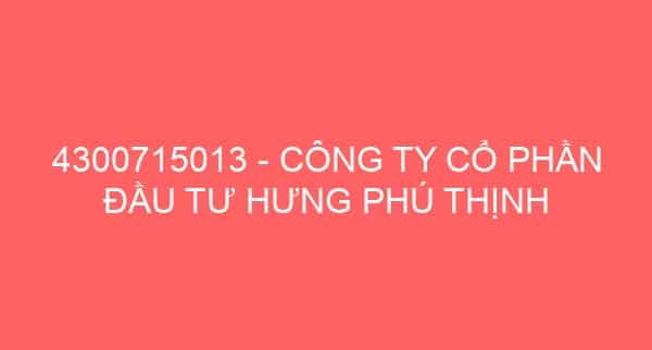 4300715013 – CÔNG TY CỔ PHẦN ĐẦU TƯ HƯNG PHÚ THỊNH