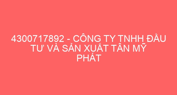 4300717892 – CÔNG TY TNHH ĐẦU TƯ VÀ SẢN XUẤT TÂN MỸ PHÁT