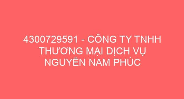 4300729591 – CÔNG TY TNHH THƯƠNG MẠI DỊCH VỤ NGUYỄN NAM PHÚC