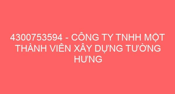 4300753594 – CÔNG TY TNHH MỘT THÀNH VIÊN XÂY DỰNG TƯỜNG HƯNG