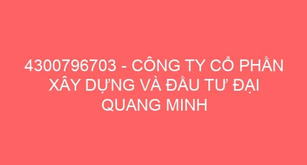 4300796703 – CÔNG TY CỔ PHẦN XÂY DỰNG VÀ ĐẦU TƯ ĐẠI QUANG MINH