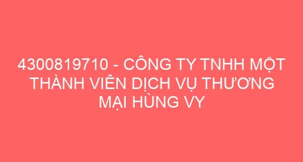 4300819710 – CÔNG TY TNHH MỘT THÀNH VIÊN DỊCH VỤ THƯƠNG MẠI HÙNG VY