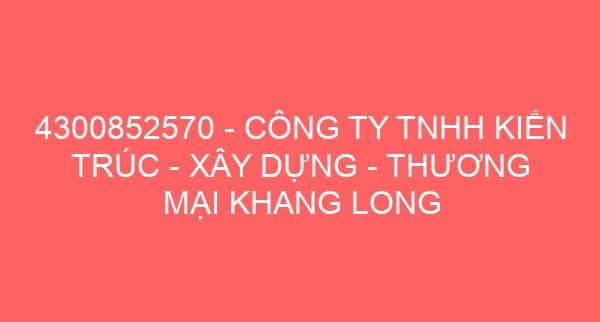 4300852570 – CÔNG TY TNHH KIẾN TRÚC – XÂY DỰNG – THƯƠNG MẠI KHANG LONG
