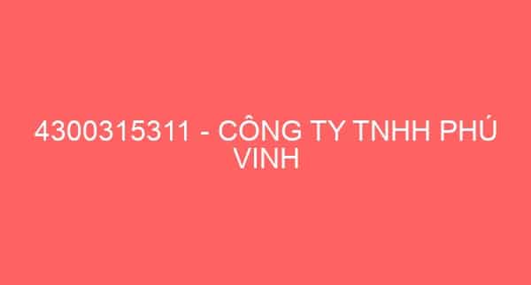 4300315311 – CÔNG TY TNHH PHÚ VINH