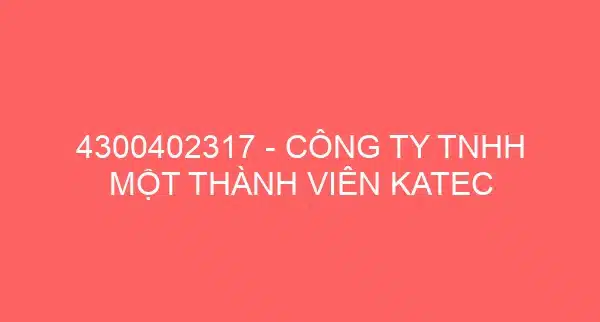 4300402317 – CÔNG TY TNHH MỘT THÀNH VIÊN KATEC Đăng vào 28/01/2025Tác giả daithinh 0 4300402317 – CÔNG TY TNHH MỘT THÀNH VIÊN KATECDoanh nghiệp liên quan:Công Ty TNHH Một Thành Viên Katec