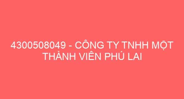 4300508049 – CÔNG TY TNHH MỘT THÀNH VIÊN PHÚ LAI