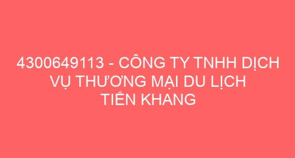 4300649113 – CÔNG TY TNHH DỊCH VỤ THƯƠNG MẠI DU LỊCH TIẾN KHANG