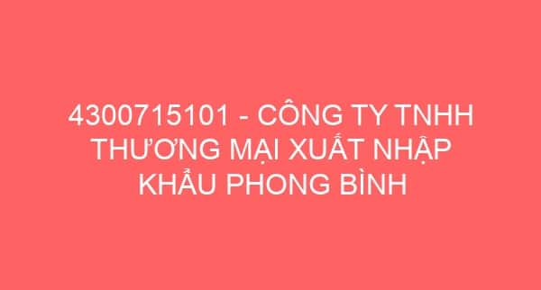 4300715101 – CÔNG TY TNHH THƯƠNG MẠI XUẤT NHẬP KHẨU PHONG BÌNH