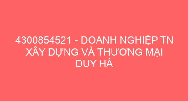 4300854521 – DOANH NGHIỆP TN XÂY DỰNG VÀ THƯƠNG MẠI DUY HÀ