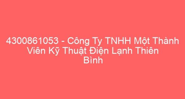 4300861053 – Công Ty TNHH Một Thành Viên Kỹ Thuật Điện Lạnh Thiên Bình Đăng vào 22/04/2012Tác giả daithinh 0 Mã số thuế: 0318450120-001 – Đại diện pháp luật: Trần Tấn AnĐịa chỉ: 135/2 Tth21, Phường Tân Thới Hiệp, Quận 12, Tp Hồ Chí MinhDoanh nghiệp liên quan:CÔNG TY TNHH MỘT THÀNH VIÊN VẬT TƯ VÀ KỸ THUẬT PHÚ DƯƠNG4300880232 – CÔNG TY TNHH MỘT THÀNH VIÊN KỸ THUẬT TM HƯNG PHÁTCông Ty TNHH Một Thành Viên Kỹ Thuật Điện Lạnh Thiên BìnhCông Ty TNHH Cơ Điện Lạnh Và Dịch Vụ Kỹ Thuật Bảo AnCông Ty TNHH Kỹ Thuật Cơ Điện Lạnh – Thương Mại Như Dũng4300882624 – CÔNG TY TNHH KỸ THUẬT ĐIỆN LẠNH HOÀNG KHANGCông Ty TNHH Một Thành Viên Điện – Máy – Điện Lạnh Nhật LongCông Ty TNHH Điện Tử – Điện Lạnh Minh Sanh4300657033 – TRUNG TÂM MÁY VI TÍNH – ĐIỆN TỬ – ĐIỆN LẠNH HOA CƯƠNGCông Ty TNHH Một Thành Viên Thương Mại Dịch Vụ Bảo Trì Điện Lạnh Huy Phong