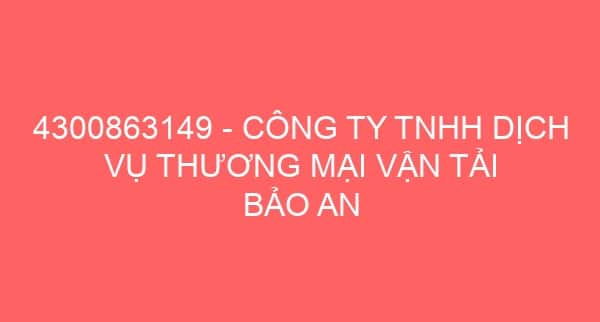 4300863149 – CÔNG TY TNHH DỊCH VỤ THƯƠNG MẠI VẬN TẢI BẢO AN