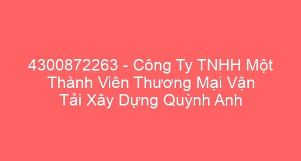 4300872263 – Công Ty TNHH Một Thành Viên Thương Mại Vận Tải Xây Dựng Quỳnh Anh Đăng vào 22/04/2012Tác giả daithinh 0 Mã số thuế: 0318450120-001 – Đại diện pháp luật: Trần Tấn AnĐịa chỉ: 135/2 Tth21, Phường Tân Thới Hiệp, Quận 12, Tp Hồ Chí MinhDoanh nghiệp liên quan:Công Ty TNHH Một Thành Viên Thương Mại Vận Tải Xây Dựng Quỳnh AnhCông Ty TNHH Xây Dựng Anh QuỳnhCông Ty TNHH Một Thành Viên Quỳnh AnhDoanh Nghiệp TN Quỳnh AnhPHẠM QUỲNH ANH8046359822 – DỊCH VỤ QUỲNH ANHCông Ty TNHH Một Thành Viên Vận Tải Quỳnh NgânCông Ty TNHH Một Thành Viên Kinh Doanh Vận Tải Quỳnh NhưDoanh Nghiệp TN Vận Tải Quỳnh NhưCông Ty TNHH Thương Mại Và Xây Dựng Quỳnh Liễu