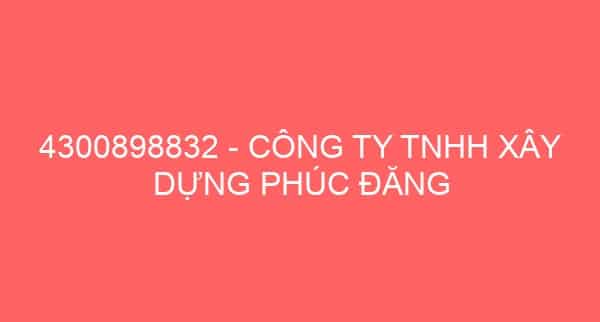 4300898832 – CÔNG TY TNHH XÂY DỰNG PHÚC ĐĂNG